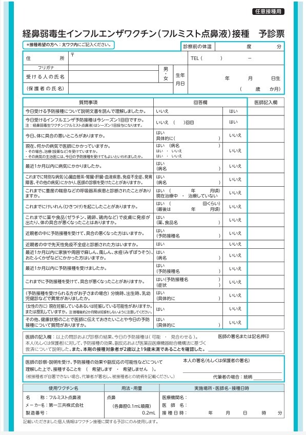 ・痛みを伴わない (左右の鼻の穴に0.1mlずつワクチン液をスプレー噴霧します)